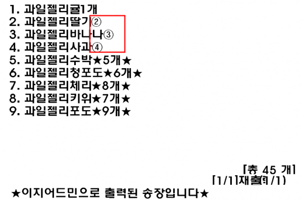 송장 출력 시 복수수량(2개 이상)일 경우, 수량이 원문자로 표시됩니다.