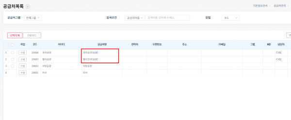 5. 공급처목록 메뉴에서 새롭게 등록된 공급처들을 확인할 수 있습니다. |