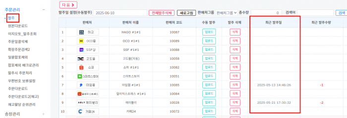 • 소셜(위메프, 쿠팡, 티몬)은 판매처 상품코드가 딜번호로 표시 됩니다. (상품코드 = 딜번호)