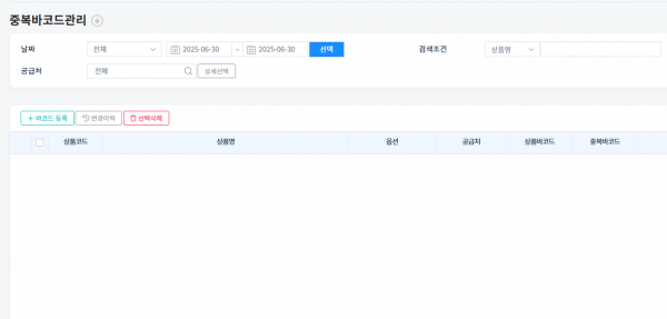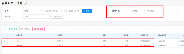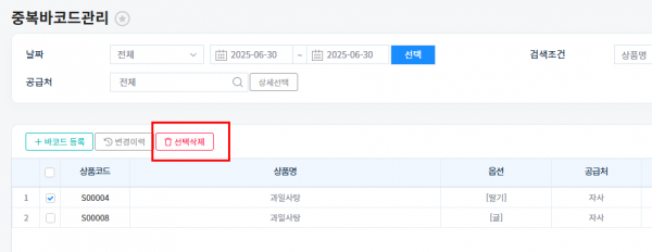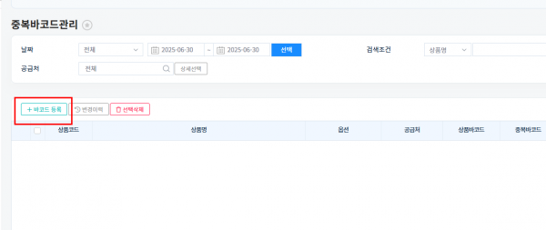 | 1. 중복바코드 삭제를 원하는 상품을 조회합니다. |