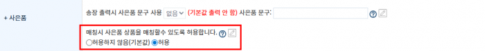 | − | + | * 사은품으로 매칭한 상품은 사은품 항목에 '사은품'으로 확인됩니다. | |