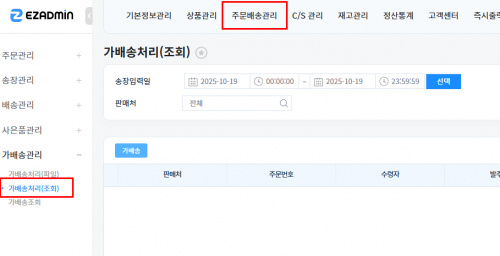 | [주문배송관리> 가배송관리> 가배송처리(조회)]