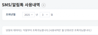 이지어드민 > C/S 관리 > SMS알림톡 사용내역