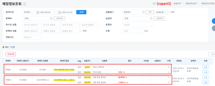 | [상품관리 > 매칭정보관리 > 매칭정보조회]