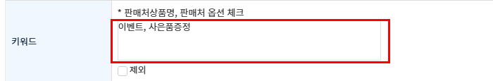 case3. 판매처 키워드 설정하기(2019.07 업데이트)판매처에서 주문한 상품의 상품명과 옵션명이 포함된 주문에만 사은품이 적용됩니다.