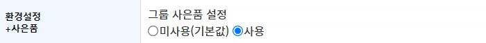 ① 사은품을 제공조건이 중복되는 상황에서 두가지 설정값 모두 중복불가에 미체크 합니다.