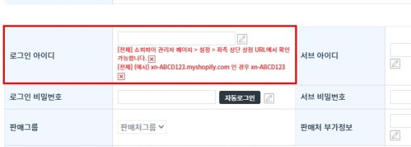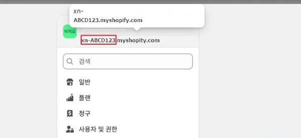ex) xn-ABCD123.myshopify.com 인 경우 'xn-ABCD123' 입력합니다.